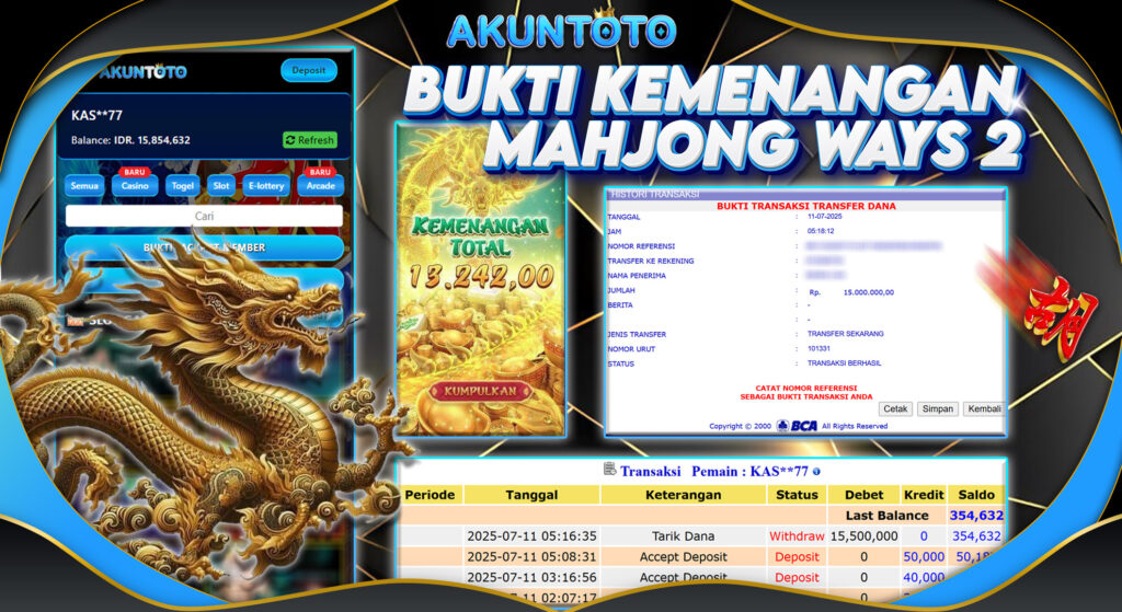 AKUNTOTO JACKPOT SLOT MAHJONH WAYS 2 Rp.15.500.000 JUMAT ,11 JULI 2025